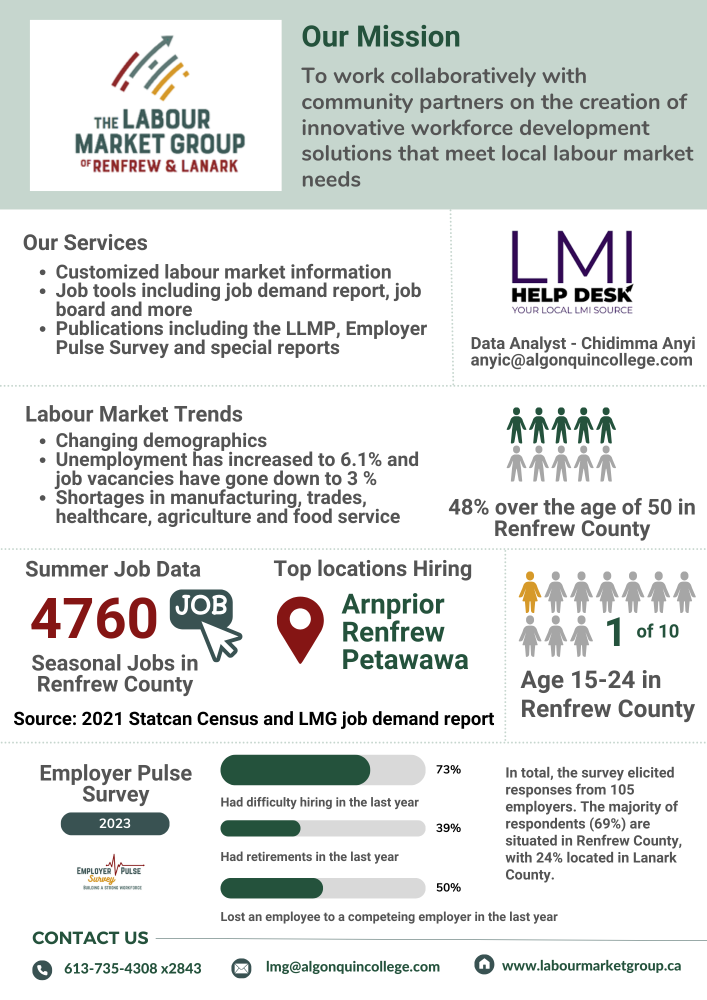 - Labour Market Presentations - We provide presentations virtually and in-person across the region. We can tailor to your audience including youth, employers or industires. Email us at lmg@algonquincollege.com