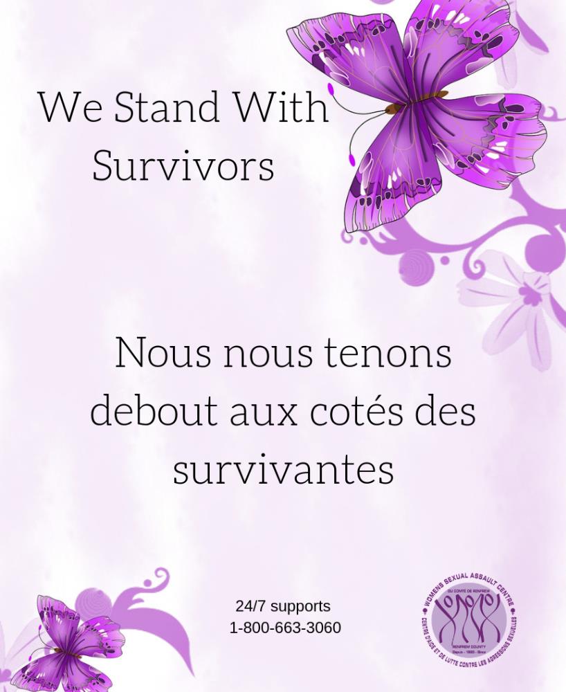 Since 1993, WSAC provides direct support to survivors (aged 16 ), families, community members and organizations in Renfrew County. We offer extensive public education, training, and community events. WSAC also supports the 2SLGBTQ community and their families with a variety of supports, advocacy, and public education events.